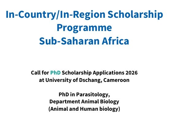 Call for PhD Scholarship Applications 2026 at University of Dschang, Cameroon.PhD in Parasitology Department Animal Biology (Animal and Human biology).Supported