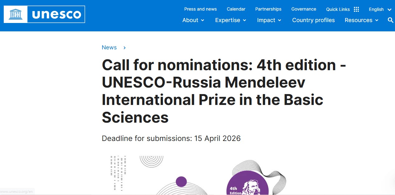 4th edition – UNESCO-Russia Mendeleev International Prize in the Basic Sciences The Rector of the University of Dschang informs the