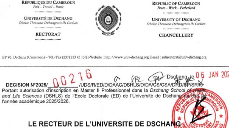 Décision pourtant autorisation d’inscription des étudiants en Master II Professionnel à la Dschang School of Health and Life Sciences (DSHLS) , pour l’année académique 2025/2026.