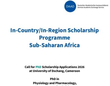 11/03/2025 In-Country/In-Region Scholarship Programme Sub-Saharan Africa 2 No Comments 1 Views Call for PhD Scholarship Applications 2026at University of Dschang, Cameroon PhD in Physiology and Pharmacology The programme aims to foster