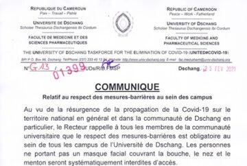 Dschang,UDs/SIC-10/03/21.Le Président du Conseil d'Administration de la Fondation Université de Dschang (FONDUDs), informe les membres de la communauté universitaire que dans le cadre du développement et la modernisation
