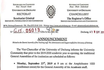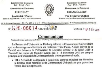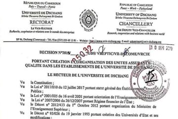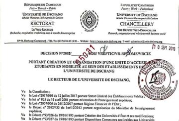 Suite au décret N°2019/447 du 27 Août 2019 du président de la République portant nomination de responsables dans certaines Universités