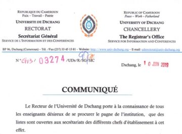 Dschang,UDs/SIC-11/06/19.Le Recteur de l'Université de Dschang porte à la connaissance de tous les enseignants désireux de se procurer le pagne de l'institution, que des listes sont ouvertes aux secrétariats