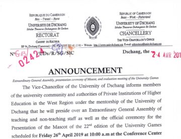 Dschang,UDs/SIC-23/04/19.Les étudiants de l’Université de Dschang retenus par la Décision de Recteur no E18/02369 du 18 Avril 2019 pour contribuer, à titre bénévole, au travail des différentes commissions du Comité Local d’Organisation de