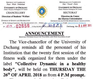 Dschang,UDs/SIC-26/04/18.Ce mercredi 25 avril 2018 est un jour spécial pour le Conseil Rectoral de l’Université de Dschang (UDs). L’un de ses membres en l’occurrence, le Prof. Maurice Tsalefac, Doyen