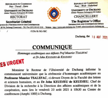 Dschang,UDs.SIC-19/08/21.The International Entrepreneurial group of which the University of Dschang is a shareholder, better known by its French acronym GIE/SA held its 3rd ever Board