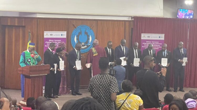 Entre autres articulations, le palmarès du concours a été présenté. Les 86 nouveaux agrégés dans les six sections du concours (Histoire des Institutions, Droit Privé, Droit Public, Science Politique, Sciences Économiques, Sciences de Gestion) ont reçu des attestations. Le major des majors, Prof. Cheikh Mbacké Diop de l’Université Alioune Diop de Bambey (Sénégal), s’est vu décerner le Prix Coris Bank. Des personnalités ressortissant de certains des 23 pays membres du Conseil Africain et Malgache de l’Enseignement Supérieur (CAMES) ont été décorés de distinctions dans l’Ordre des palmes académiques du CAMES.