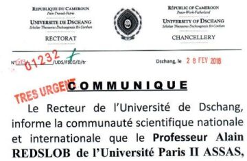 Dschang-UDs/SIC-28/02 /18.Le Recteur de l’Université de Dschang, informe la communauté scientifique nationale et Internationale que le Professeur Alain RedslobRetrouvez-nous sur
