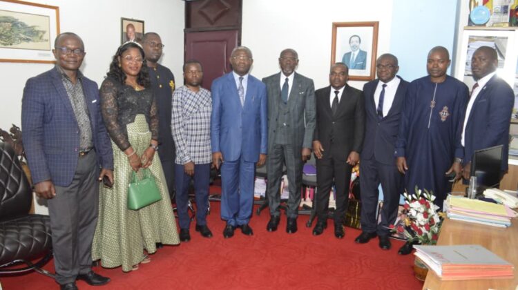 Une visite aux couleurs d’une rencontre des Agrégés.Voilà une impression légitime de cette rencontre entre le Professeur Roger TSAFACK NANFOSSO, Recteur de l’Université de Dschang, et la grande délégation de la FSEG venue lui rendre visite le mercredi 02 décembre 2025, dans le cadre de la présentation des lauréats du CAMES en provenance du Sénégal. Cette délégation était composée entre autres, des quatre nouveaux agrégés de la FSEG de l’Université de Dschang. À leurs côtés, leur accompagnateur de l’expédition sénégalaise, le Professeur Joseph Pasky NGAMENI, lauréat de l’édition 2021; le Professeur Hilaire NKENGFACK, Chef du Département d’Économie et lauréat de l’édition de 2023, la Professeure DJOFACK Sidonie, DAAF de l’UDs et lauréate de l’année 2021, sous la conduite du Professeur Georges WANDJI, Doyen de la FSEG.